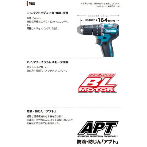 マキタ HP487DZ (本体のみ)(バッテリ・充電器・ケース別売) 充電式振動ドライバドリル 18V