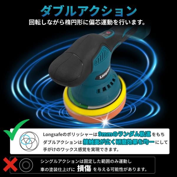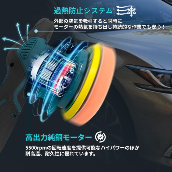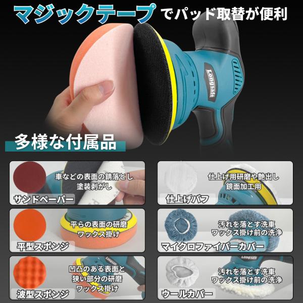 マキタ 互換 電動 ポリッシャー バフ 充電式 車 床 145mm 小型 車磨き 洗車 コードレス 電動 研磨 磨き 18V 14.4V バッテリー 対応(POL02-BL)