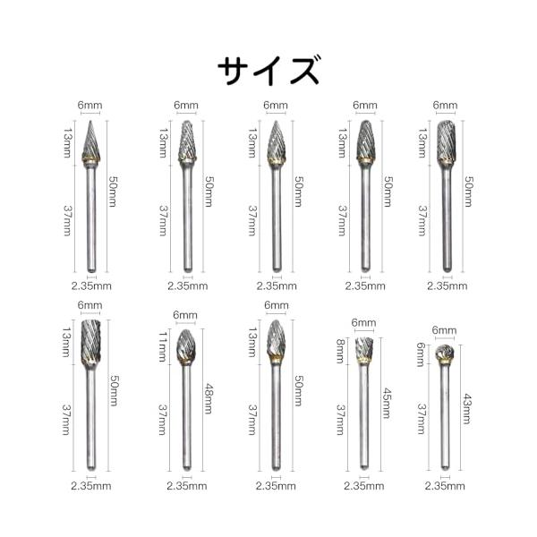 サムコス 超硬バー リューター 2.35mm軸刃径6mm 10種類 ケース付10本セット タングステン製 超硬ドリルビット タングステンリュータ