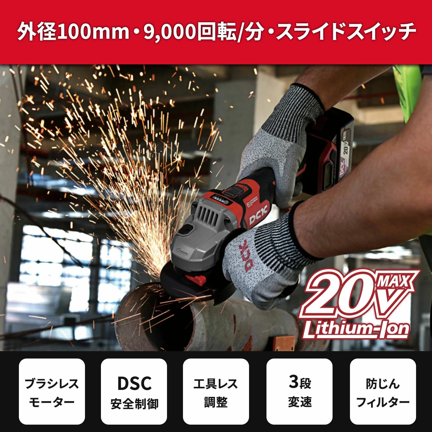 DCK 100mm 20V 充電式ディスクグラインダー KDSM04-100