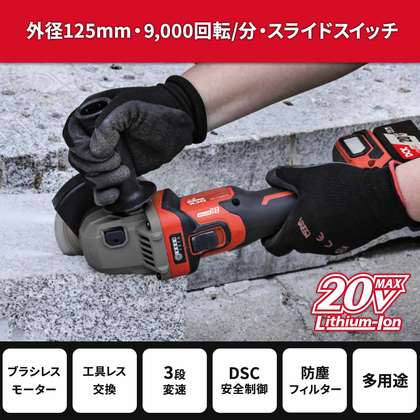 DCK 125mm 20V 充電式ディスクグラインダー KDSM04-125