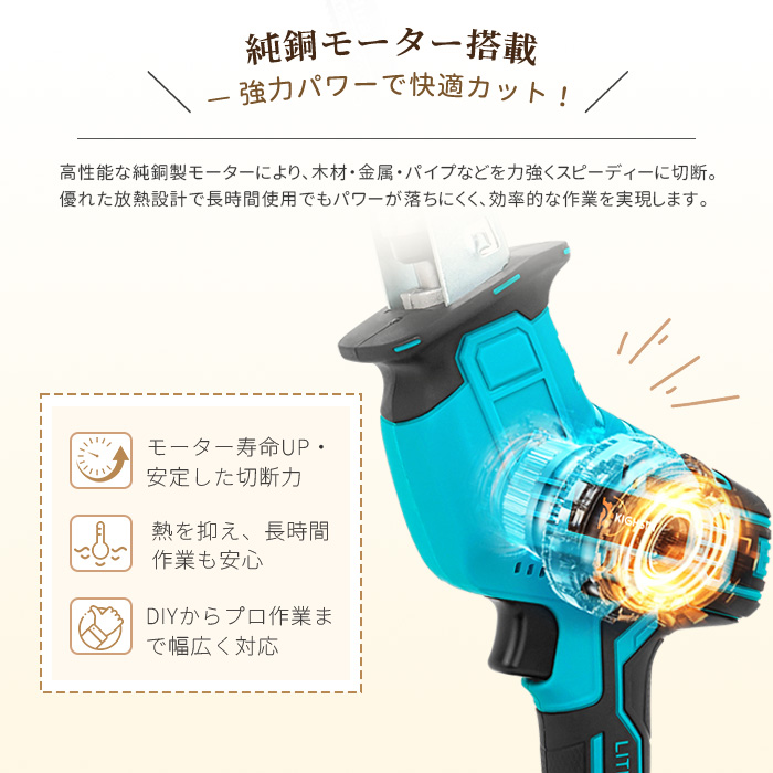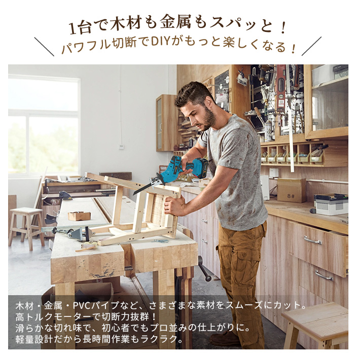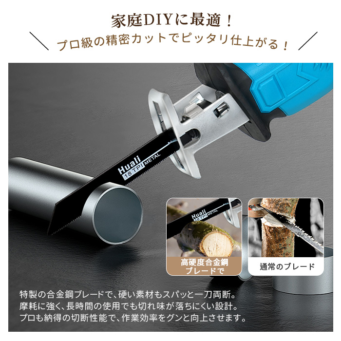 レシプロソー 電動 のこぎり 充電式 チェーンソー 小型 コードレス 無段変速 金工 木工 切断 電動レシプロソー 電動ノコギリ 充電式のこぎり 電気のこぎり