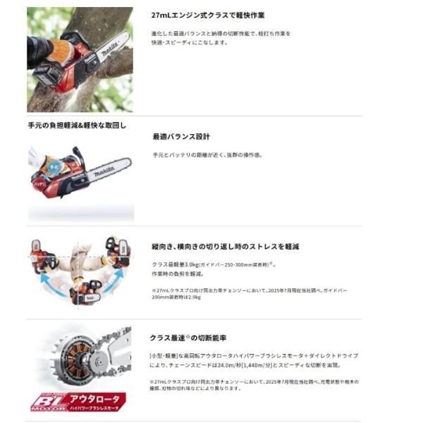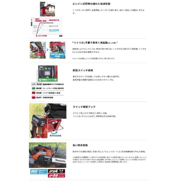 マキタ MUC031GRD 充電式チェンソー 青 (バッテリ1個・充電器付) 250mm スプロケットノーズバー 40Vmax