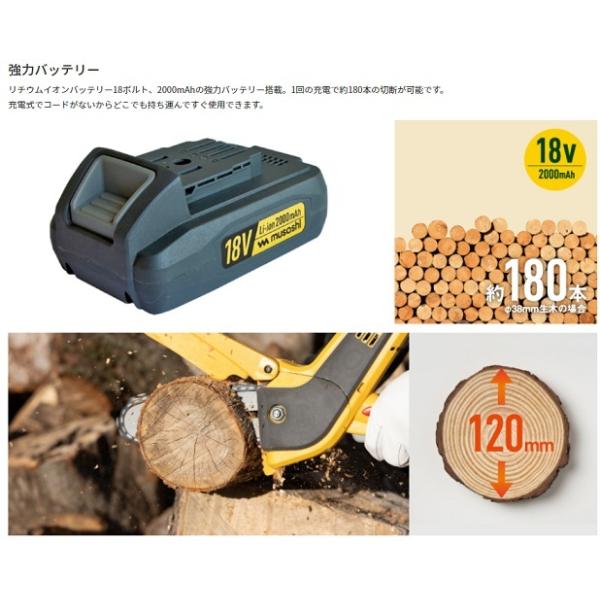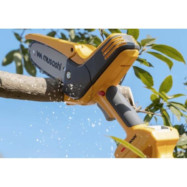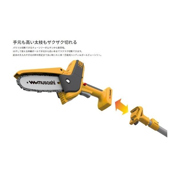 ムサシ PCS-6001 充電式ハンディ&ポールチェーンソー 18V ポール装着時約2.6Kg / 延長ポール未装着時約1.7Kg(バッテリ含む)