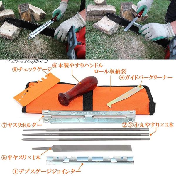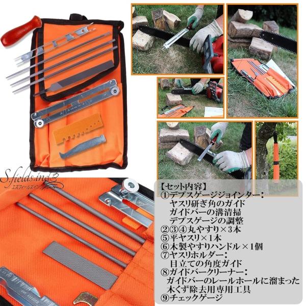 S.fields.inc正規直営店 チェーンソー目立て道具 9本セット 刃研ぎ ヤスリ ガイド デプス調整ゲージ シャープナー
