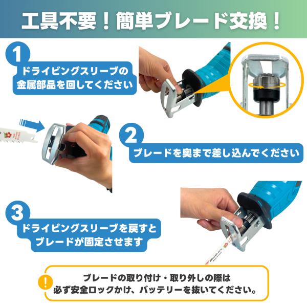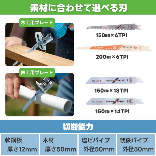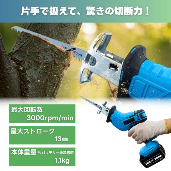 マキタ 互換 レシプロソー 電動のこぎり 充電式 セーバーソー 生木用 木材 コードレス 電動 18V 14.4V バッテリー 金属用 超硬替刃4枚付 (RECI01-BL)
