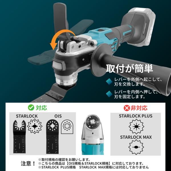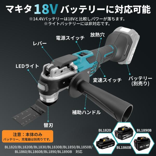 マキタ 互換品 充電式 マルチツール 18V 14.4V ブラシレスモーター 振動数調整 OIS スターロック 対応 集塵機能 LED作業ライト DIY 電動工具 (MUL02C-BL)