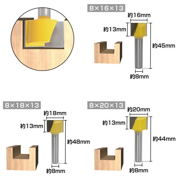 トリマー ルーター ビット 軸 シャンク 8mm 5本 セット 超硬 エンドミル フライス 木工 ほぞ溝 カッター 切削工具 工具