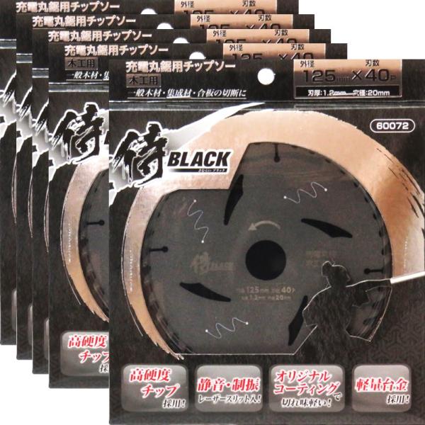 侍ブラック 木工用 チップソー 125×1.2×40P 5枚組 【8060-60072 高儀 合板 集成材 充電マルノコ】