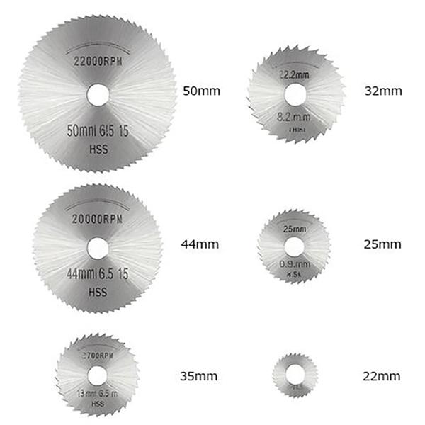 ミニルーター用 HSS丸鋸刃6枚セット 22〜50mm シャフト2本付 金属 木工 切断 T809