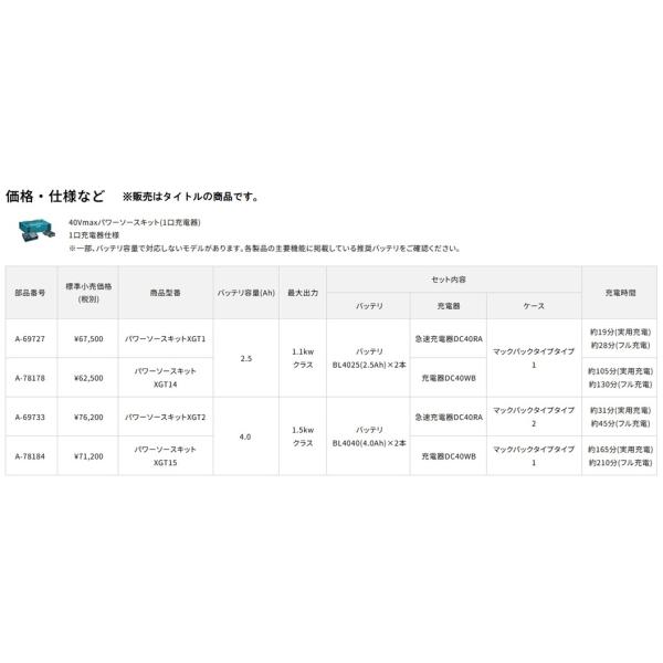 (マキタ) A-78178 パワーソースキット XGT14 バッテリBL4025x2本+急速充電器DC40WB+マックパックタイプ1付 40Vmax対応 makita