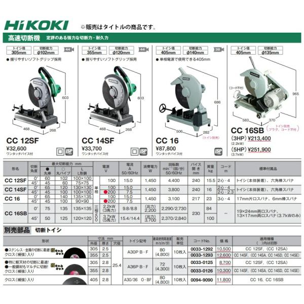 HiKOKI 高速切断機 CC14SF 丸パイプ切断能力φ120mm ワンタッチバイス付 トイシ径355mm 工機ホールディングス ハイコーキ 日立 大型商品