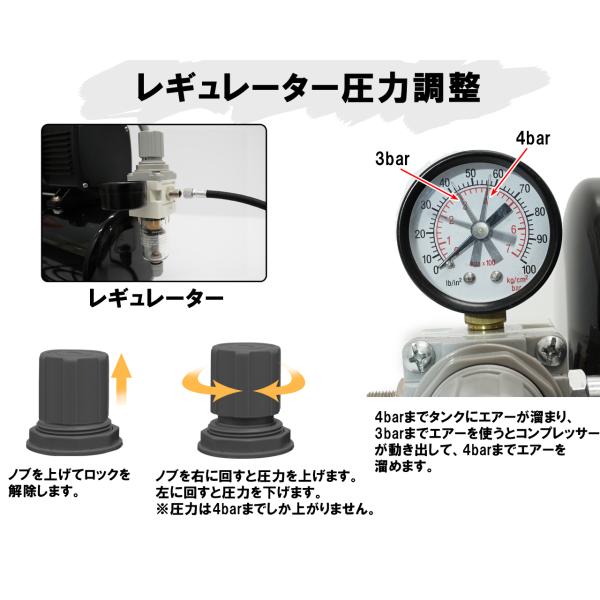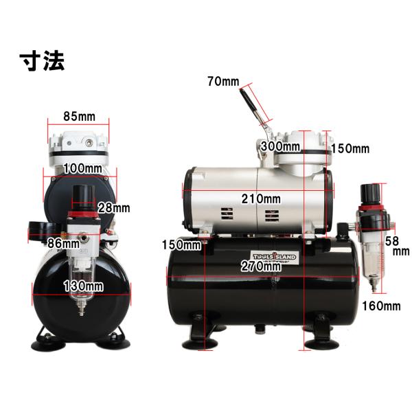コンプレッサー エア 小型 100v オイルレス ミニ エアコンプレッサー 3L タンク付 簡易日本語説明書付き プラモ塗装など