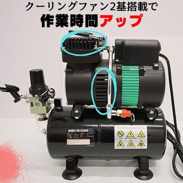 エアコンプレッサー 100v 小型 ミニエアコンプレッサー オイルレス 静音 エアブラシ デュアルファン エアーコンプレッサー エアブラシセット簡易日本語説明書付