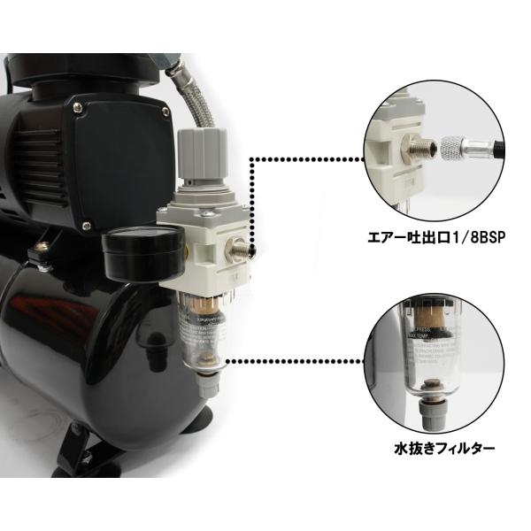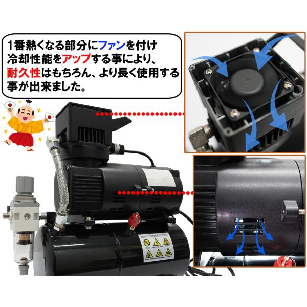 コンプレッサー 100v 静音 小型 ミニ エアー エア 冷却ファン付き オイルレス 3L タンク プラモ塗装 初心者 卓上 簡易日本語説明書付