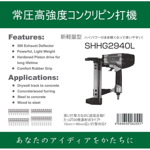 2024年新発売!軽量!常圧高強度コンクリピン打機 SHHG2940L ガスピン 常圧 【メーカー1年保証付】SH3018 精品工房 正峰
