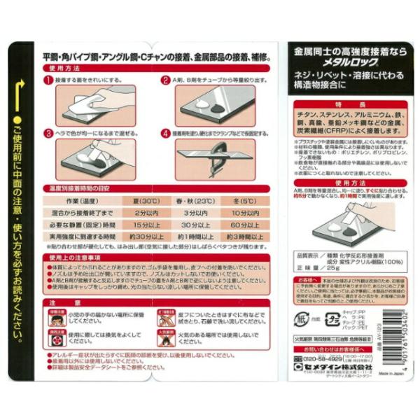 セメダイン メタルロック 25gセット AY-123 速硬化タイプ 2液等量混合型 金属同士の高強度接着 接着剤 CEMEDINE ネコポス可 在庫