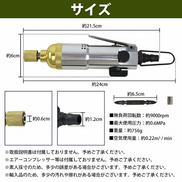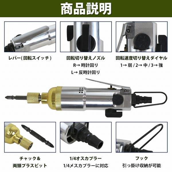 エアー インパクト スクリュー ドライバー インレット 1/4 回転調整 エア ツール 車 整備 コンプレッサー 用 エア 工具