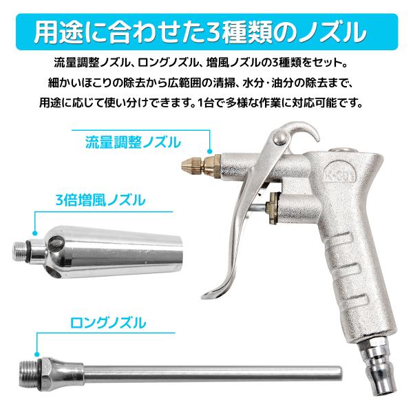 即納 3倍風量 エアダスターガン エアブローガン エアーガン 流量調整ノズル ロングノズル 増風ノズル 3つ付きセット エアトルネー