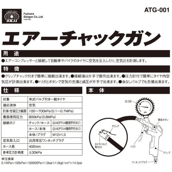 SK11 エアーチャックガン エアチャック ATG-001 タイヤゲージ エアーチャック エアタイヤゲージ 空気入れ 自動車 バイク 圧力計