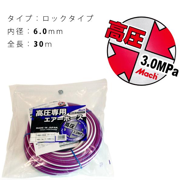 限定色 マッハ 高圧 エアーホース 内径6.0mm バイオレット&ホワイト 30mタイプ VW-630R