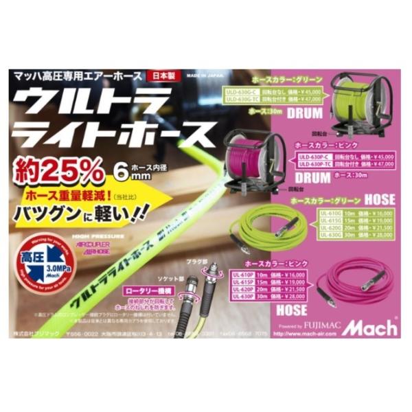 フジマック 高圧専用エアーホース(長さ30m 内径6mm) 回転台なし ULD-630P-C ピンク ウルトラライトホースドラム