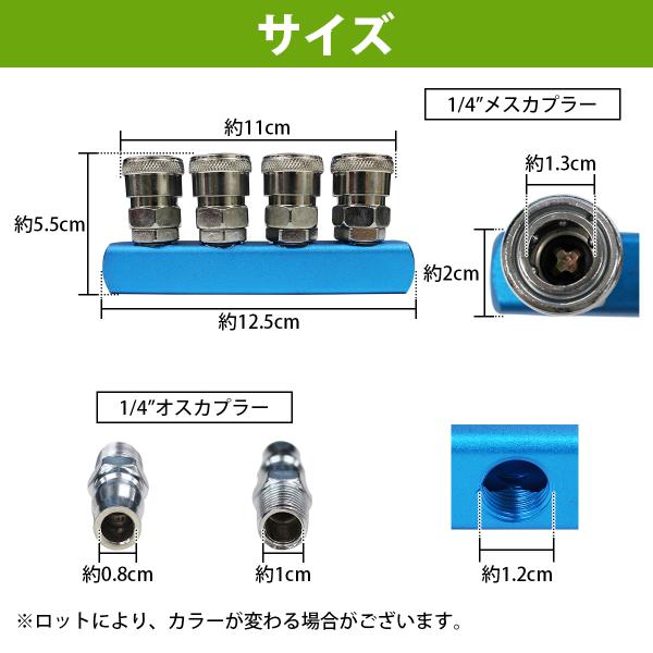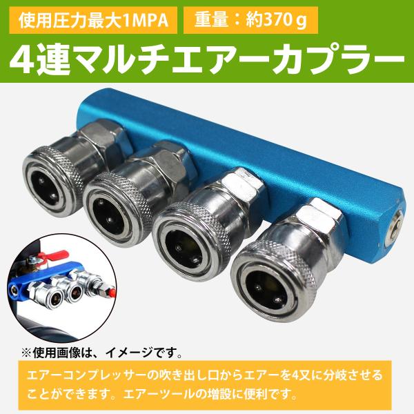 1/4 ワンタッチ式 4連 マルチ エアー カプラー 青/ブルー エア ホース ツール コンプレッサー 分岐 プラグ カプラー ホース