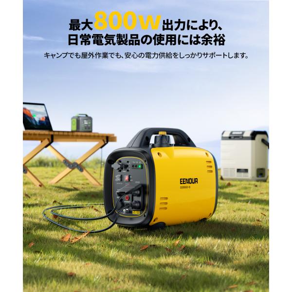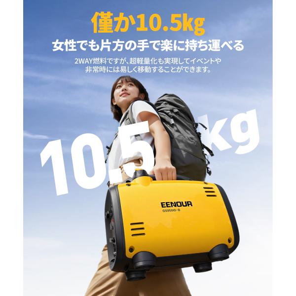 クーポンで64,900円 カセットボンベ ガソリン 兼用 EENOUR インバーター発電機 0.8kVA AC DC 出力 軽量 コンパクト 正弦波 静音 家庭用 GS950iD-B 停電対策 防災