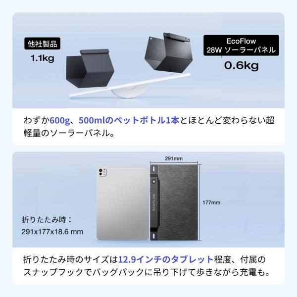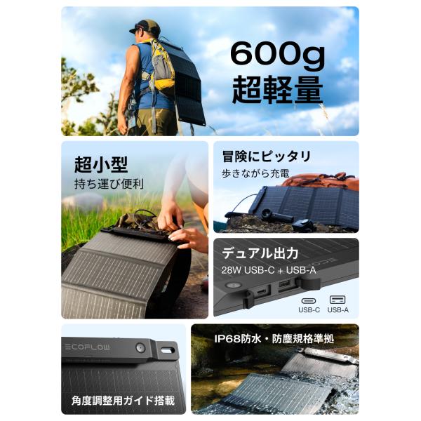 EcoFlow 28W ソーラーパネル ソーラーチャージャー 太陽光パネル ポータブル電源 ソーラー 折り畳み 超薄型 エコフロー