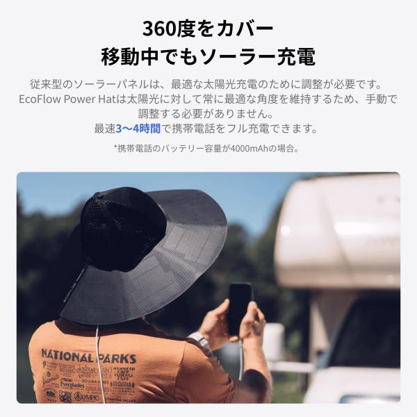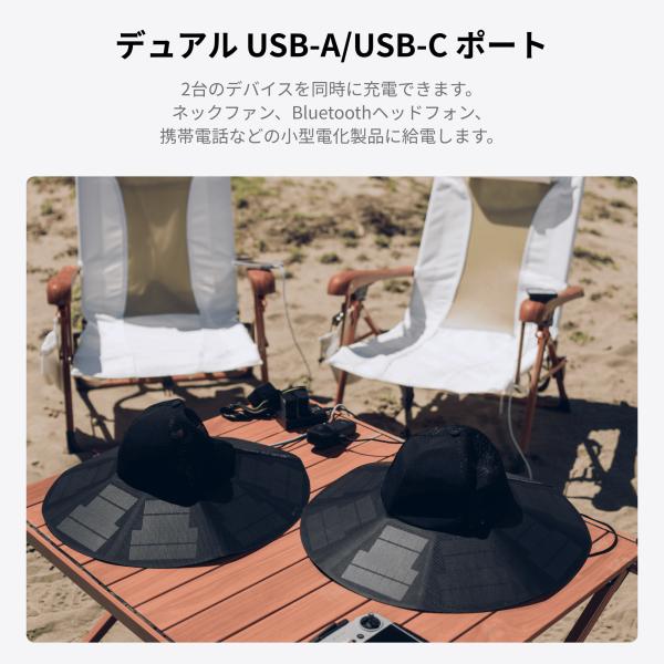 EcoFlow Power Hat 着用型ソーラーハット 超軽量 折畳み式 防水 USBポート 移動中もソーラー充電 アウトドア 釣り 登山 キャンプ スマホ充電 iphone エコフロー