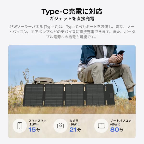 EcoFlow 45W (Type-C) ソーラーパネル 小型 太陽光発電 太陽光パネル ソーラー充電器 45W ソーラー 車中泊 キャンプ 防災 節電 折り畳み EcoFlow