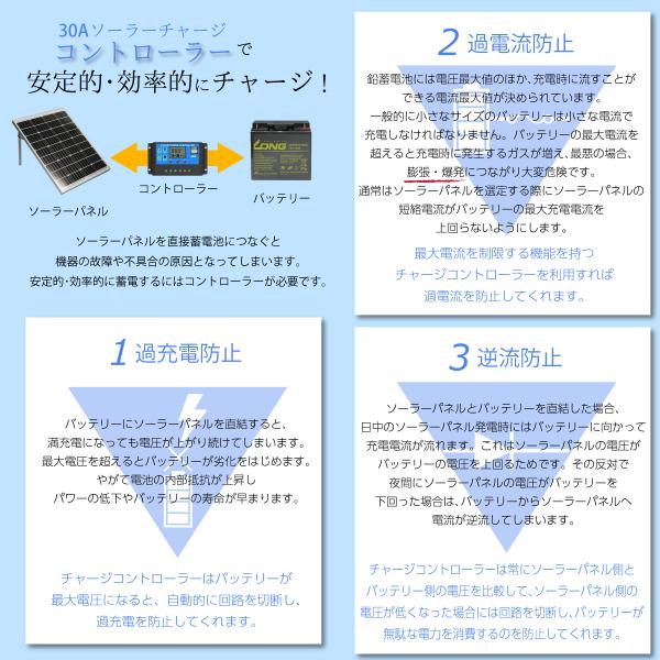 30A ソーラーパネル コントローラー PWM式 12V/24V LCD液晶 チャージコントローラー レギュレーター USB付き ソーラーチャージ