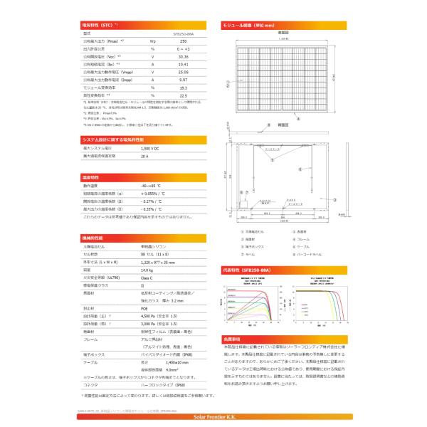 ソーラーパネル ソーラーフロンティア 単結晶250W SFB250-88A 厚み35mm 14kg FRONTIER 軽量 太陽光 発電