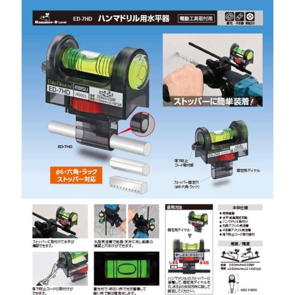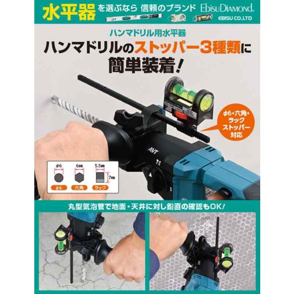 ハンマドリル用水平器 Φ6・六角・ラックストッパー対応 黒(スケルトン) EBISU(エビス) ED-7HD