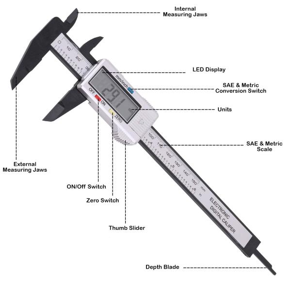 デジタル ノギスゲージ カーボンファイバー複合材製 軽量 150mm YZA156