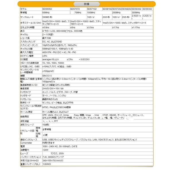 薄型 1Gs 100MHz FFT機能付 カラー ポータブル デジタルオシロスコープ フルセット LAN付 SDS7102 OWON 正規代理店