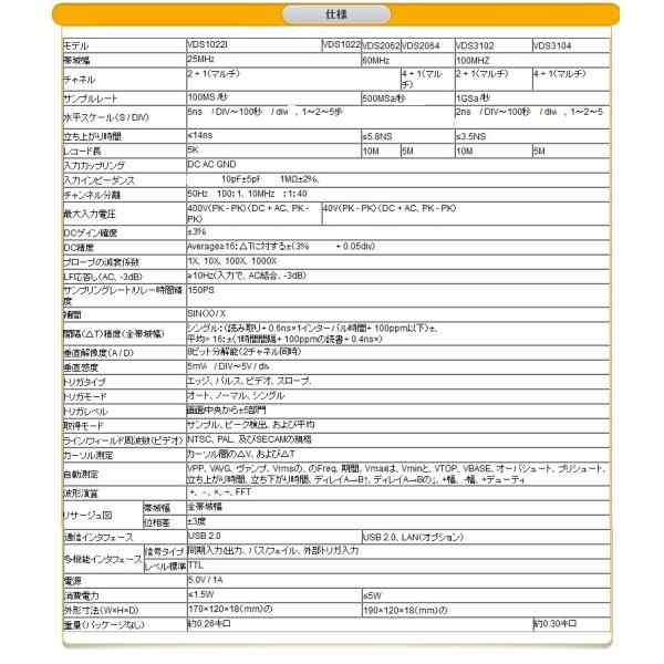 100Ms/s 25MHz帯域 FFT搭載 PCベース デジタルオシロスコープ 400V付 VDS1022 VDS1022I OWON 正規代理店
