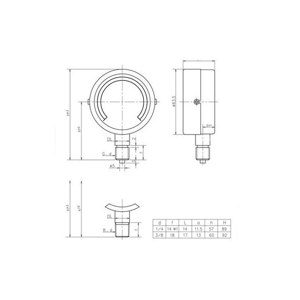 汎用形圧力計 AT G1/4B 60φ 2MPa 第一計器製作所
