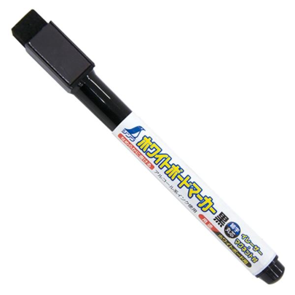シンワ ホワイトボードマーカー 黒 細字丸芯 イレーザー マグネット付 1.5mm 78506【ホワイトボード用 シンワ測定 ペン マジック】【ネコポス】