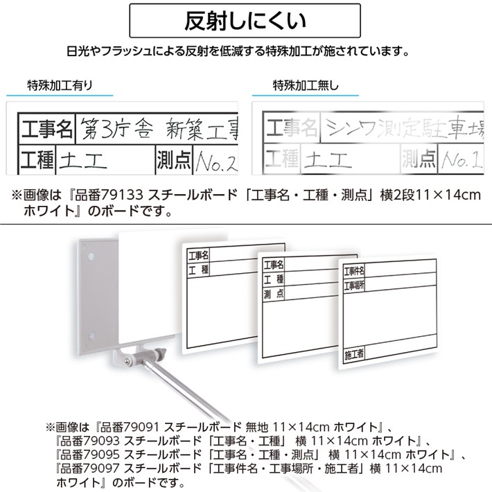 シンワ スチルボード 「工事名・工種」 横 14×17cm ホワイト 79094【シンワ測定 ホワイトボード 工事記録】【ネコポス】