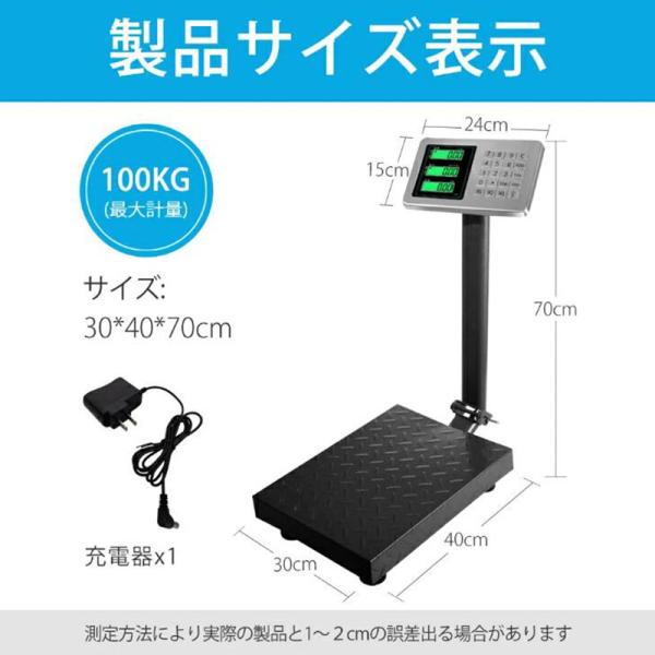 台はかり 100kg デジタル台はかり 電子スケール 台秤 バッテリー内蔵 充電式 折りたたみ式 PL保険加入済 目量10g 計量器 高精度センサー 大容量電池 長時間