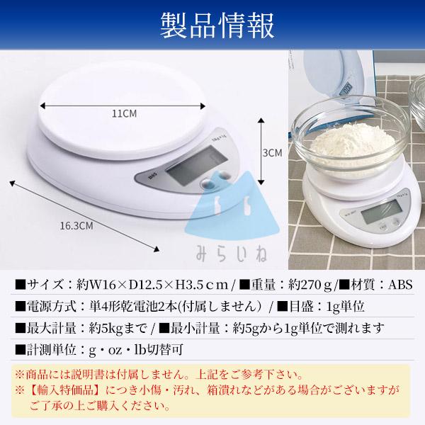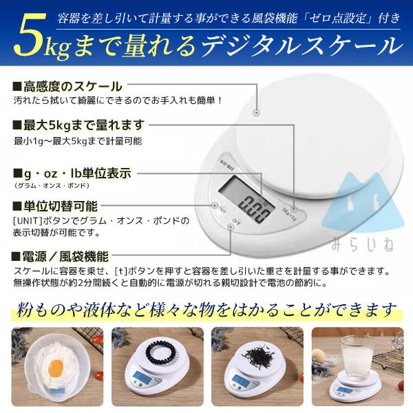電子はかり デジタル キッチン スケール 5Kgまで1g単位 計り 秤 風袋機能付 コンパクトはかり デジタルスケール 安い 軽量 電子秤 万能