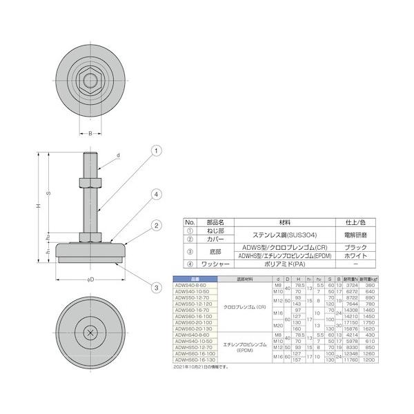日本圧着端子製造 スガツネ工業ステンレス鋼製アジャスタークロロプレンゴムM12×70 ADWS50-12-70