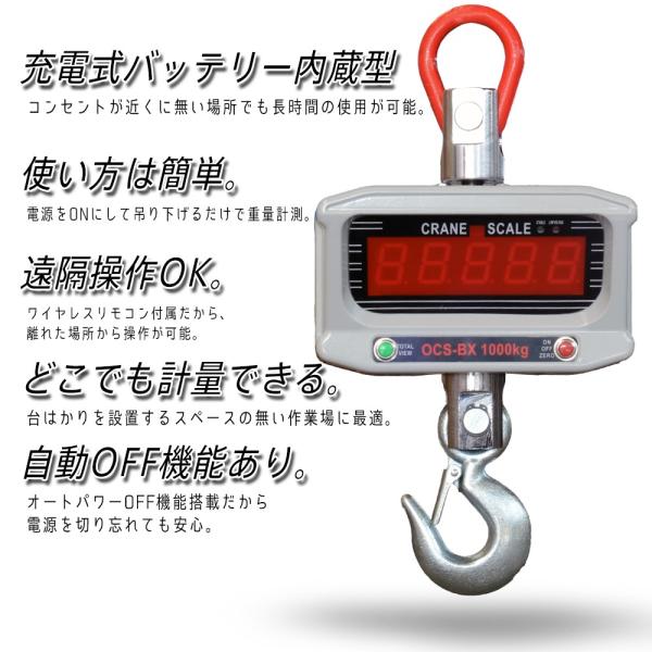 はかり デジタルクレーンスケール 1000kg 1トン 1t 1ton 充電式 吊り秤 リモコン付