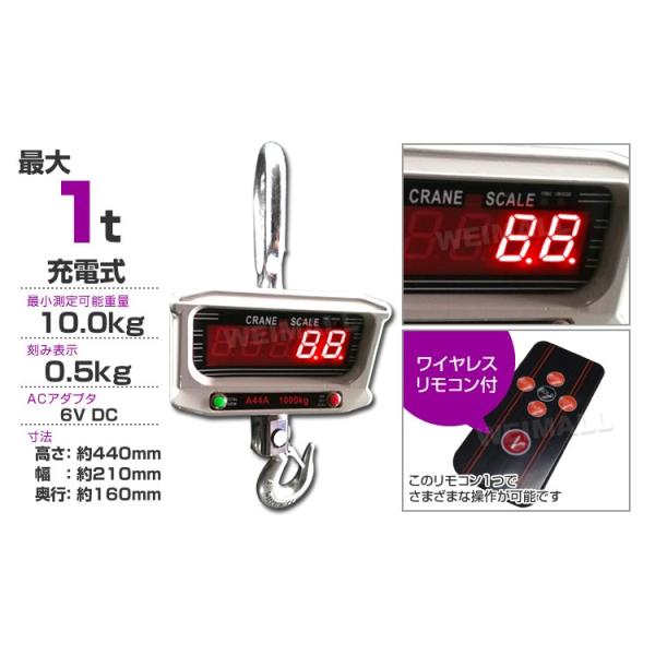 クレーンスケール 1t 充電式 デジタル 吊秤 吊りはかり 1000kg 1トン リモコン付 WEIMALL