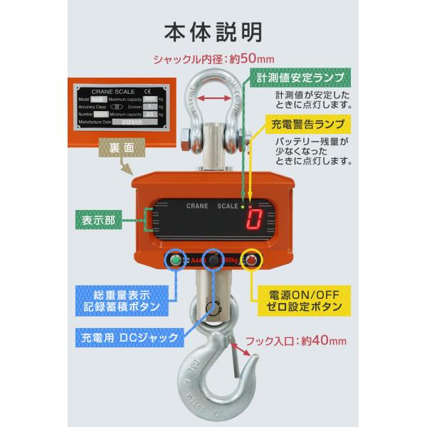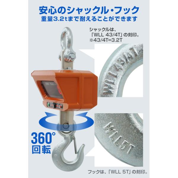 クレーンスケール 3t 充電式 デジタル 吊秤 吊りはかり 3000kg 3トン リモコン付 電子スケール WEIMALL