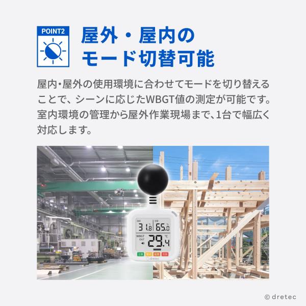ドリテック 公式 温湿度計 黒球式 熱中症指数計 WBGT 熱中症計 バックライト カラビナ 温度計 湿度計 熱中症対策 屋内 屋外 学校 工事現場 スポーツ O-712