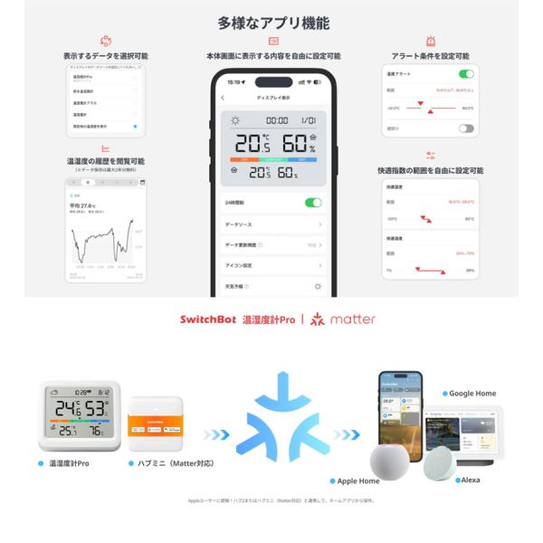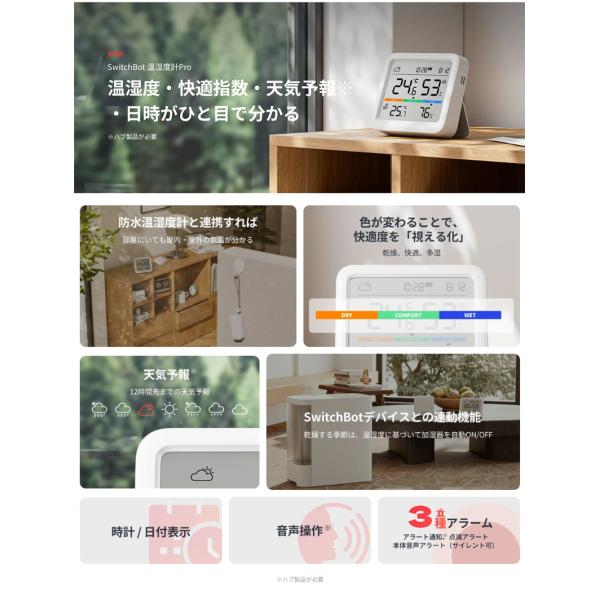 SwitchBot スイッチボット 温湿度計 Pro デジタル 熱中症対策 スタンド 天気予報 時計 卓上 カレンダー スマートハウス IoT W4900000