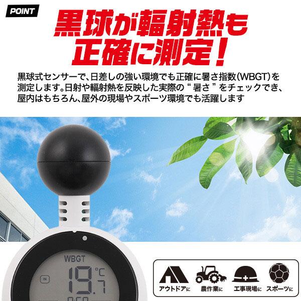 熱中症リスクをアラーム+LED+ 黒球式熱中症指数計 熱中症指数モニター 警戒 JIS準拠 熱中症チェッカー 熱中症 暑さ指数計 黒球型熱中症計 温度 湿度 時計