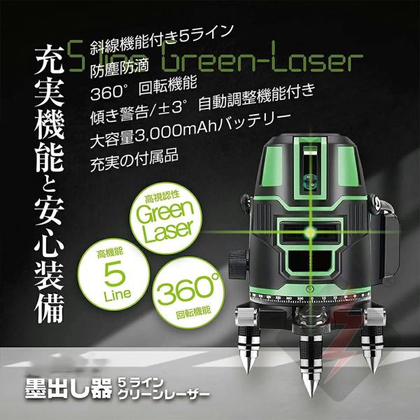 【2025新発売】レーザー墨出し器 最強 360°レーザー レベル 三脚付けて使用可 水平器セット 小型 軽量 高輝度 精度 5ライン 屋内 屋外 建築 防水 防塵 傾斜